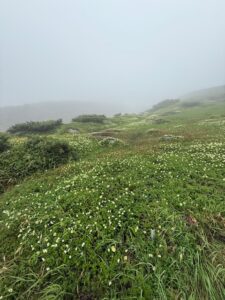大雪山のお花 旬から終盤となってきました。連日快晴の道内でしたが 今日は残念なガスと霧雨模様 山頂もガスの中、登頂をパスして姿見駅から裾合平ー姿見夫婦池ー地獄谷 花トレッキングへ。 戻る頃には旭岳山頂も写真のような姿・・ ああ盛夏の旭岳からの展望を眺めたかったです