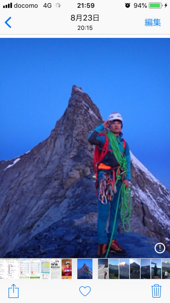 写真:スイスのEIGER アイガー3970m登頂(*写真はなんだか槍ヶ岳にしか見えないですね__)