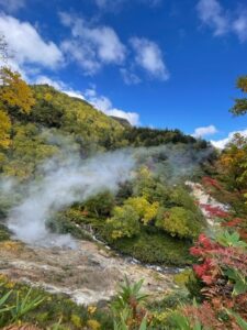 北海道大雪山の紅葉「高原沼めぐり」 猛暑が続く日本列島において道内の紅葉も例年よりはるかに遅いようです。タクト ツアーも一週間ほどツアーをずらし本日紅葉を愛でるツアーを実施、マイカー規制の高原沼へ。天気予報は晴れマーク、雨の疑いもなく青空でスタートしましたが、緑沼にてまさかの雷から速攻大雨そして雹まで降ってしまうあいにくの天気、高原沼や大学沼までのんびり紅葉めぐりと思っておりましたが緑沼ですでに大雨、引き返してきました。ついこの間まで暑さにウンザリしていたのに本日は雨で濡れてブルブル寒く体の芯まで冷え込んでしましました。下山後の温泉がありがたく・・・ 暑さからほどよい余韻もなくいきなり寒い秋・・・やれやれ北海道はいつもこれですよね。
