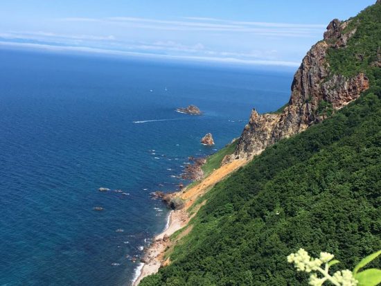 今日は来月北アルプスの岩稜を歩きゲストさんに岩とショートロープクライミングに慣れてもらうために小樽赤岩でクサリ&ハシゴなどの登下降の練習とクライミングシューズでの初クライミングを楽しむ?怖がって? いただきました! この赤岩の最高の景色を堪能されたようです。