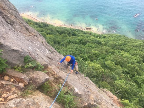 小樽祝津にある海岸沿いの岩場「小樽赤岩」マルチからフリー、人工と色々なスタイルが楽しめる岩場です。今回はリード講習、支点の構築からリード&セカンドビレイ、ラッペルの手順などを時間をかけてやりました。既にフリーグレードも登れて、トップローブビレイも出来るかたもリード&セカンドビレイをする手順などは戸惑うケースもあるようですね。 そうゆう時はどうぞガイドツアーの講習会系ツアーにご参加ください。 きっとガイド達は今のアップグレードした今のスタンダード・スタイルにけっこうアンテナはっていますし、取りいれていると思いますので。