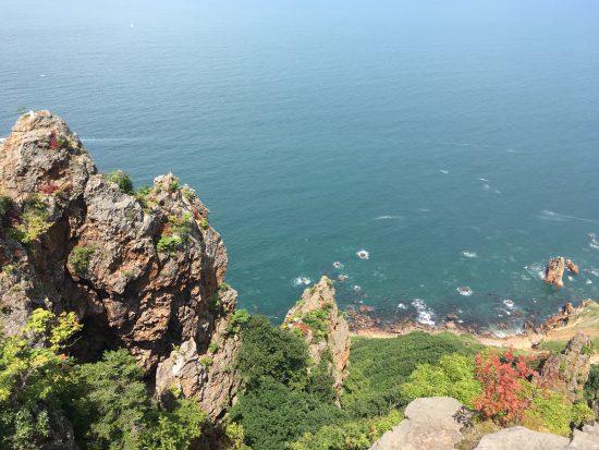 久々に海のブルーと空のブルー、そして心地よい風 快適な赤岩クライミングをゲストさんに楽しんでいただきました。マルチピッチク、海をバックに岩塔を登ります。