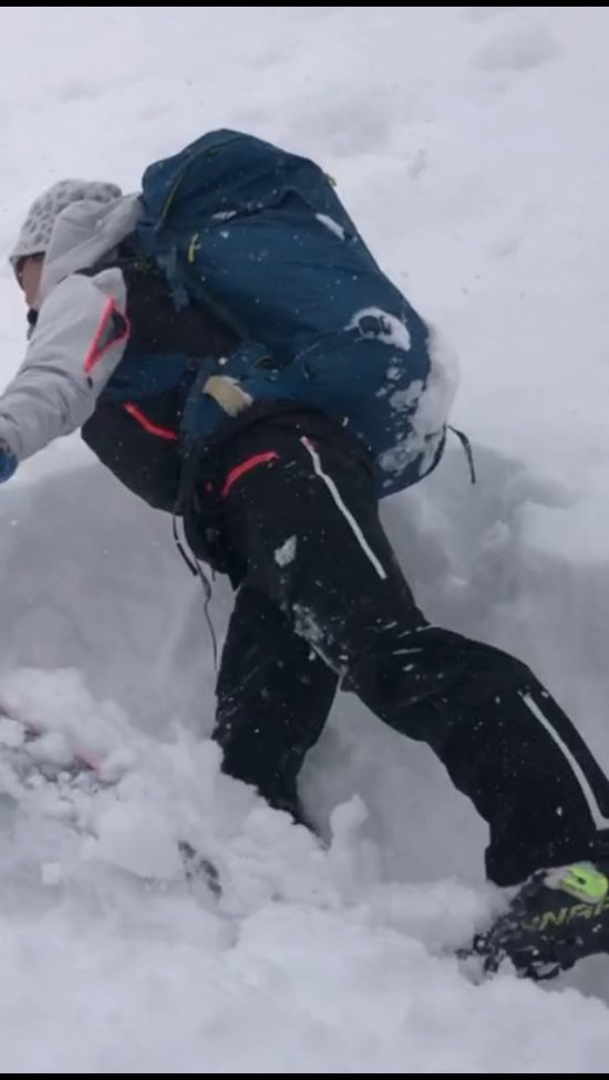 翌日2日新年初パウダーをいただきました、 深すぎる! 鬼のラッセルと滑りは視界なくなるほどのパウダー顔面攻撃でした。
