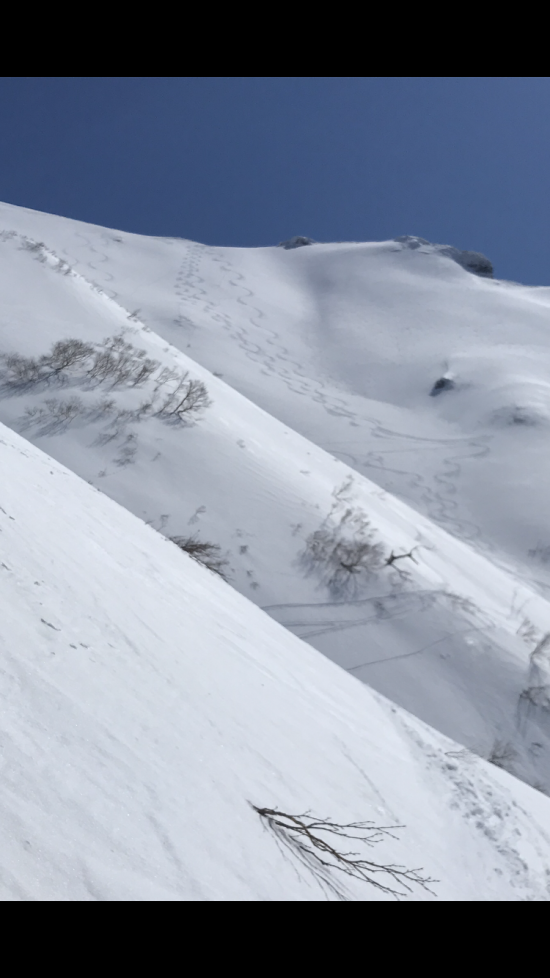 今回の斜面は普段の登るラインの斜面でなく・・ロング&広い斜面でまるでヨーロッパにいるような雰囲気でご機嫌でした。