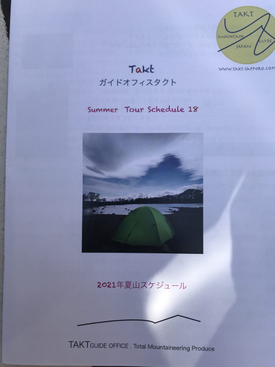 2021夏山パンフレットスケジュールが完成致しました。会員の皆様には郵送しました、また山のショップに置かせていただきました、今季も登山、ロッククライミング、縦走、ハイキング 多様なツアーを企画、皆さまが参加されることを願ってます。よろしくお願いいたします! 申し込み&問い合わせ 「ガイドオフィス タクト 」https://takt-sapporo.com 携帯090-1522-2198 山岳ガイド菊池泰子