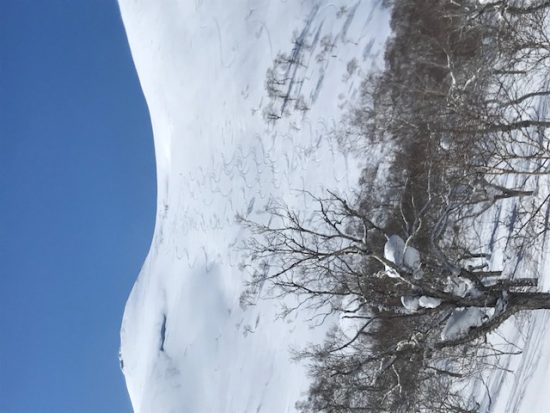 昨日の札幌市内爆風&悪天から一転 今日は全道的にいいお天気に恵まれたのではないでしょうか? 今日はニセコ、クラストの上に薄い新雪10-15CM 見た目にはキレイなパウダーに見えますよね? これがまた全方位 底あたりする浅パウでした・・・
