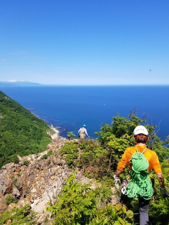 小樽赤岩ブルーをバックにクライミング。 やっぱ・・岩は楽しいです。