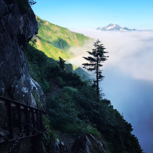 青空と岩場と雲海も・・・ 夏の北アルプスは最高ですよ。 みなさまも是非いきませんか?どこの山もご案内いたします!