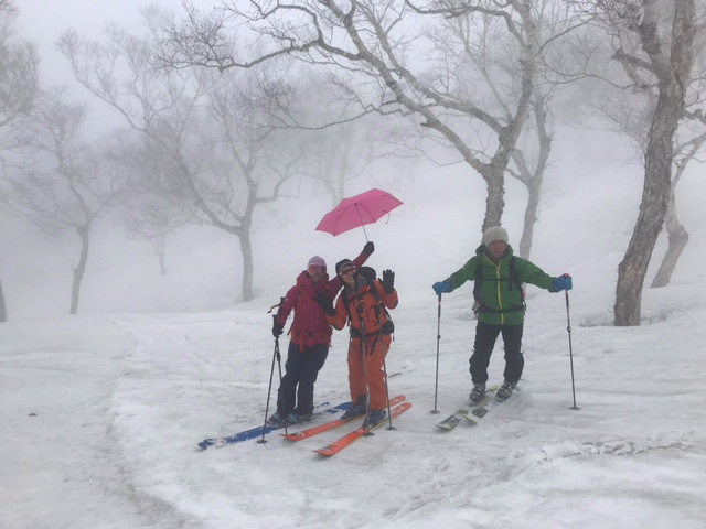 春めいて BCスキーも一段落、夏山スケジュール作成も一段落 今日はガイド仲間と恒例春スキーとジンギスカン 天気は小雨、傘をさして(笑)ぷちっと滑り速攻ジンギスカンタイムです。