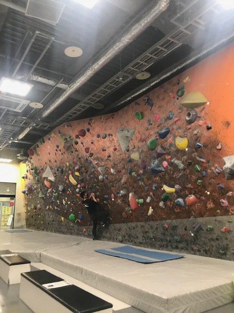 室内ボルダリング。ロープクライミングと違いシューズ&チョークがあれば一人気ままに打てるボルダリングは近年人気、かつ日々のトレーニングにもいいですね。 札幌ファクトリー「Gravity」 広くていいですよ